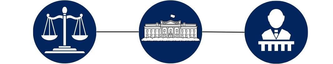 The U.S. Federal Government comprises three distinct branches: legislative, executive, and judicial, whose powers are vested by the U.S. Constitution in the Congress, the president and the federal courts. The three branches work together to ensure a system of checks and balances, preventing one branch from becoming too powerful. Each branch has specific responsibilities and powers.